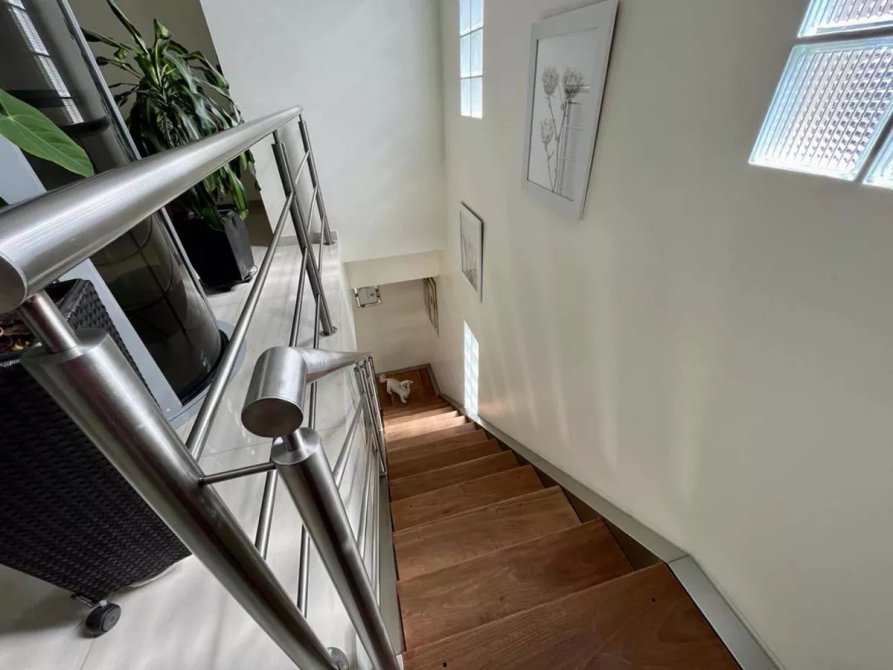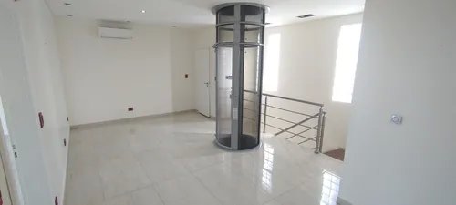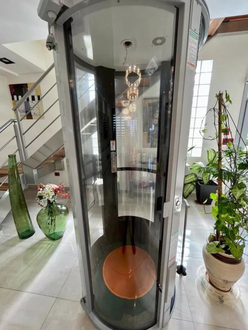 Living con ascensor interno y escalera.
